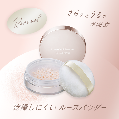 毛穴&くすみをカバーする保湿ルースパウダーがリニューアルして登場。肌にとけこむようになじんで毛穴・くすみを補正し、透明感のあるうるふわ上質肌をキープします。